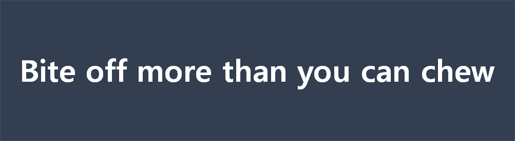 그럴 때 사용할 수 있는 영어 표현으로 'Bite off more than you can chew' 라는 표현으로 예문을 만들어 보려고 합니다.