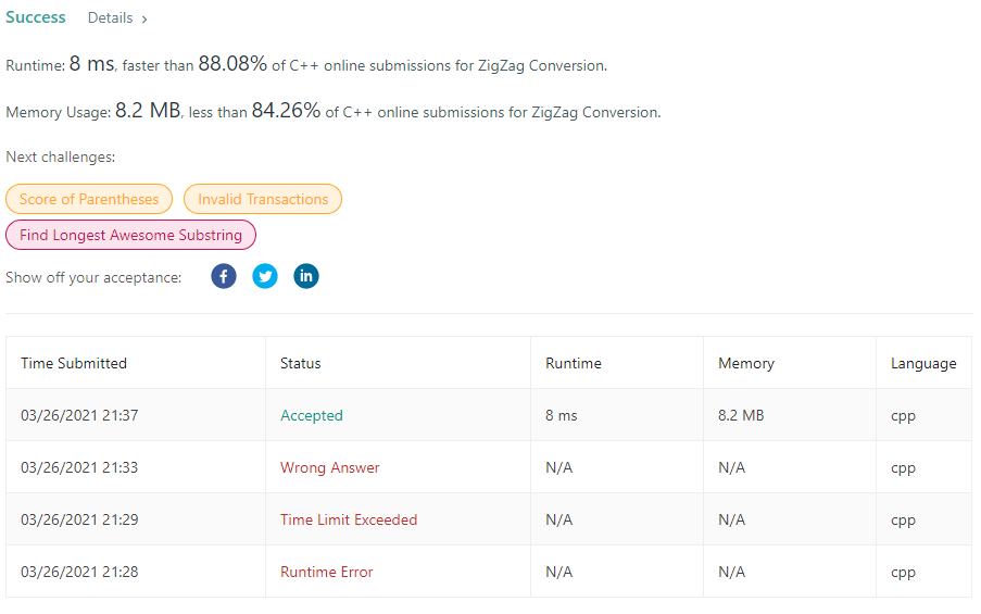 | [LeetCode] 5. Longest Palindromic Substring (0) | 2021.03.25 |