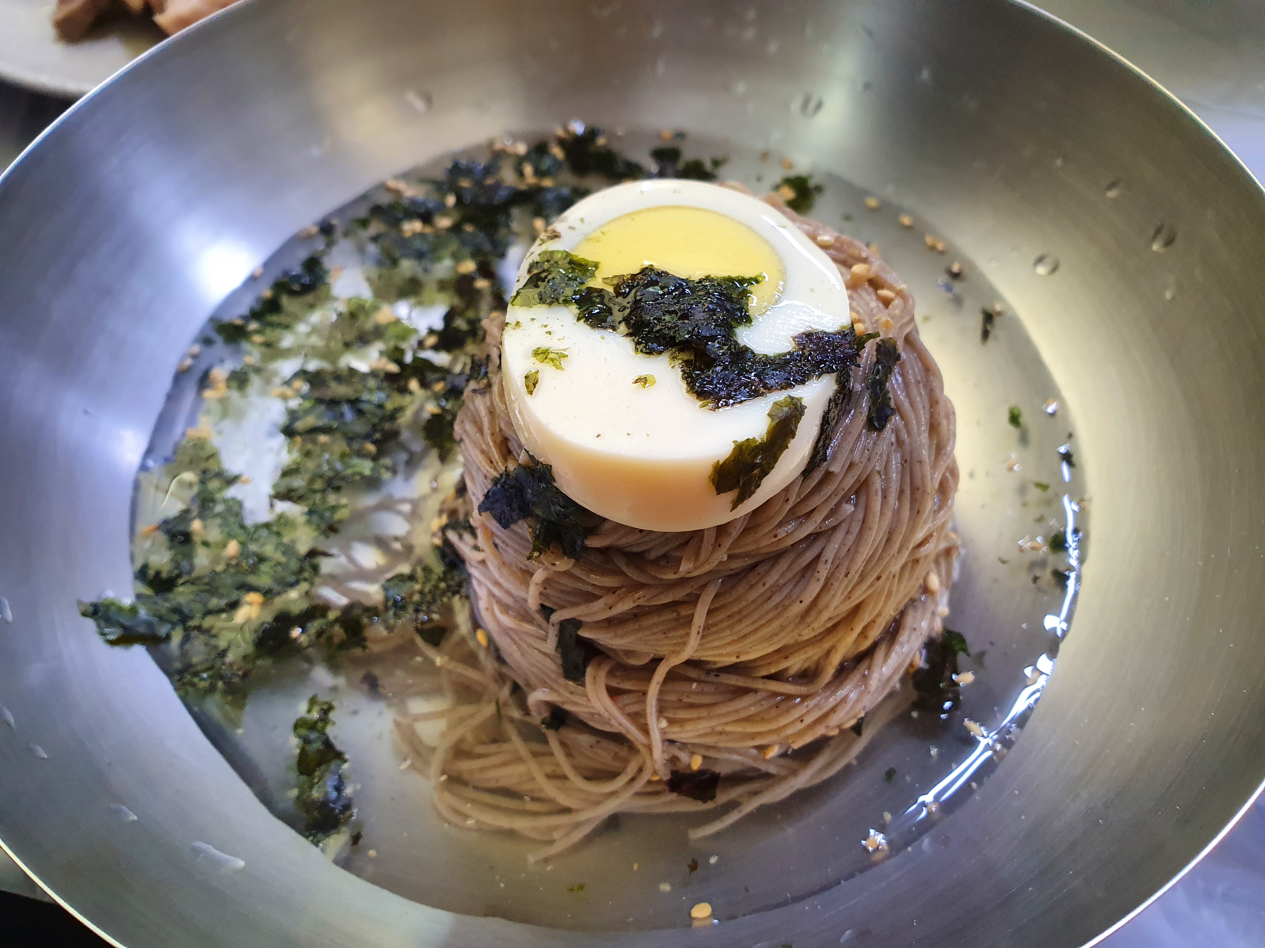 다른 막국수집에 비해서 조금 맑은느낌의 동치미 맛인데.. 음.. 막국수계의 평양냉면이랄까. 오묘한 중독성이 있는건 사실이다.