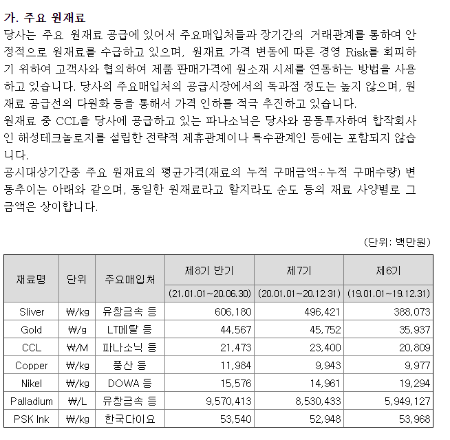 8월 17일 자로 공시 된 반기보고서를 읽어보고 있는 와중에 주요 원재료를 꽤나 많이 매입하고 있는 것을 확인했다.