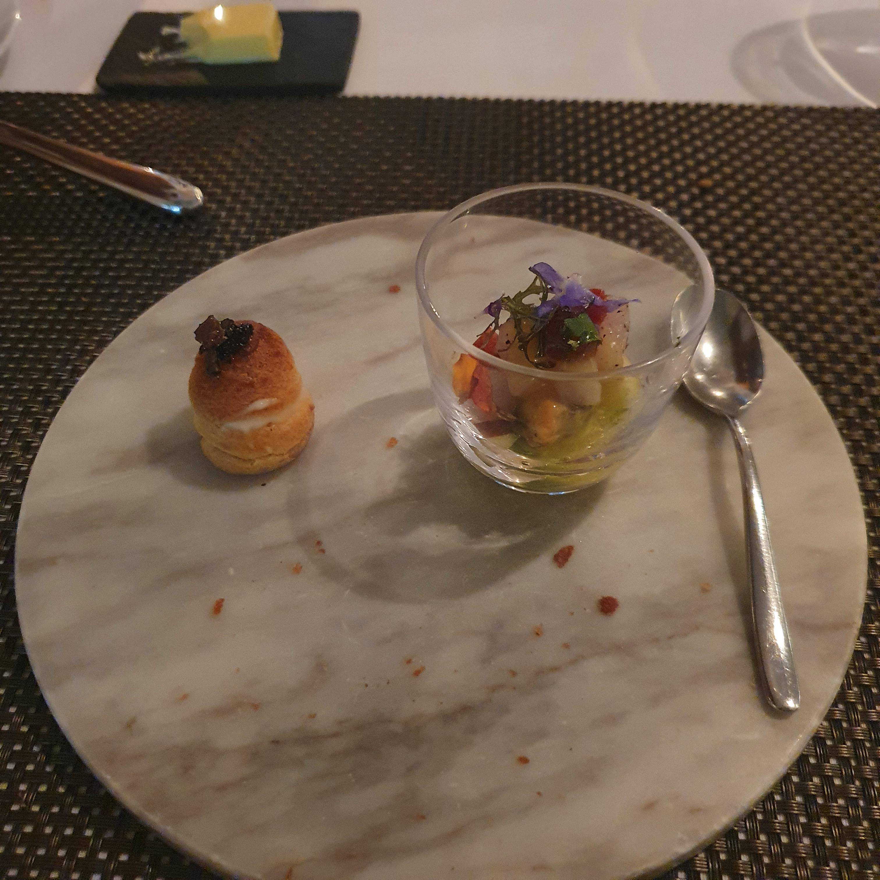 우측 아뮤즈부쉬 부터 먹은 뒤, 왼쪽의 쿠키 같은걸 먹으라고 하시는데