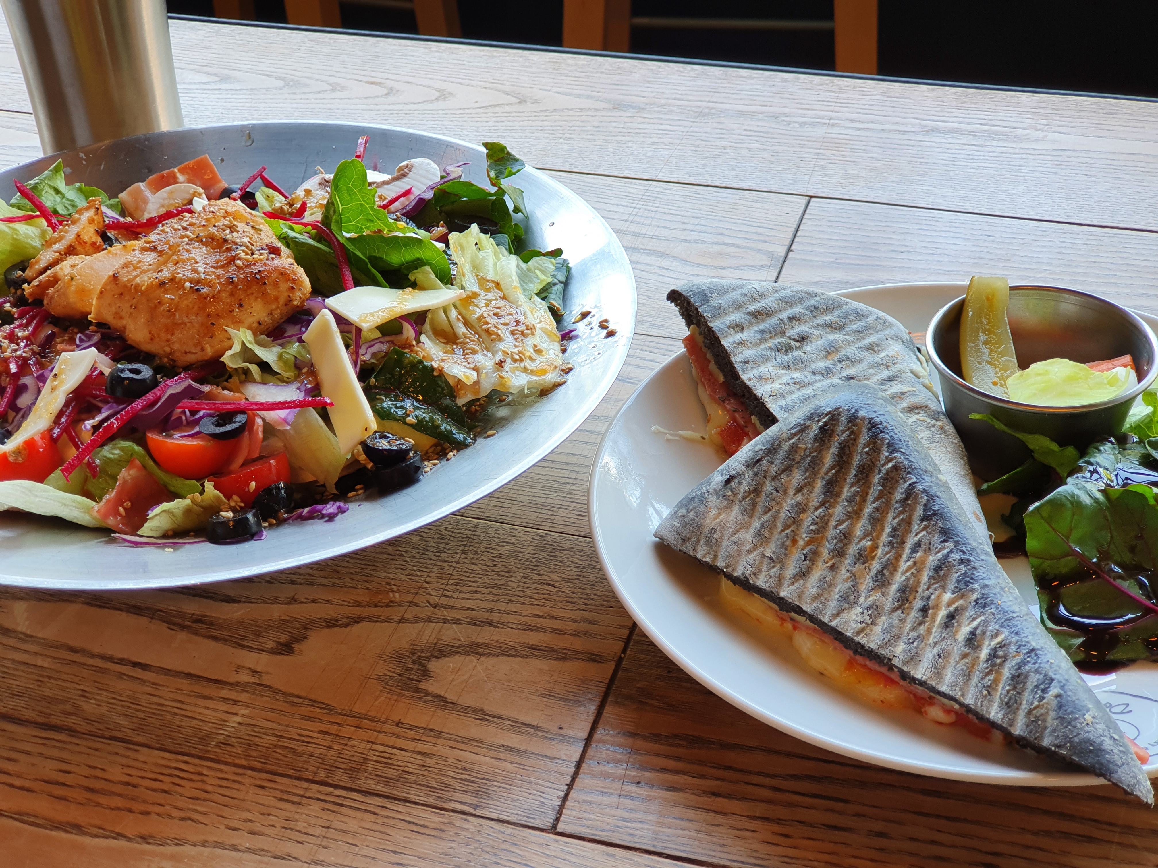 메뉴는 닭가슴살 샐러드와 이탈리안 파니니를 시켰습니다.