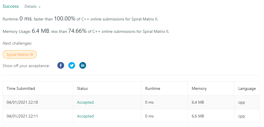 | [LeetCode] 54. Spiral Matrix (0) | 2021.03.30 |