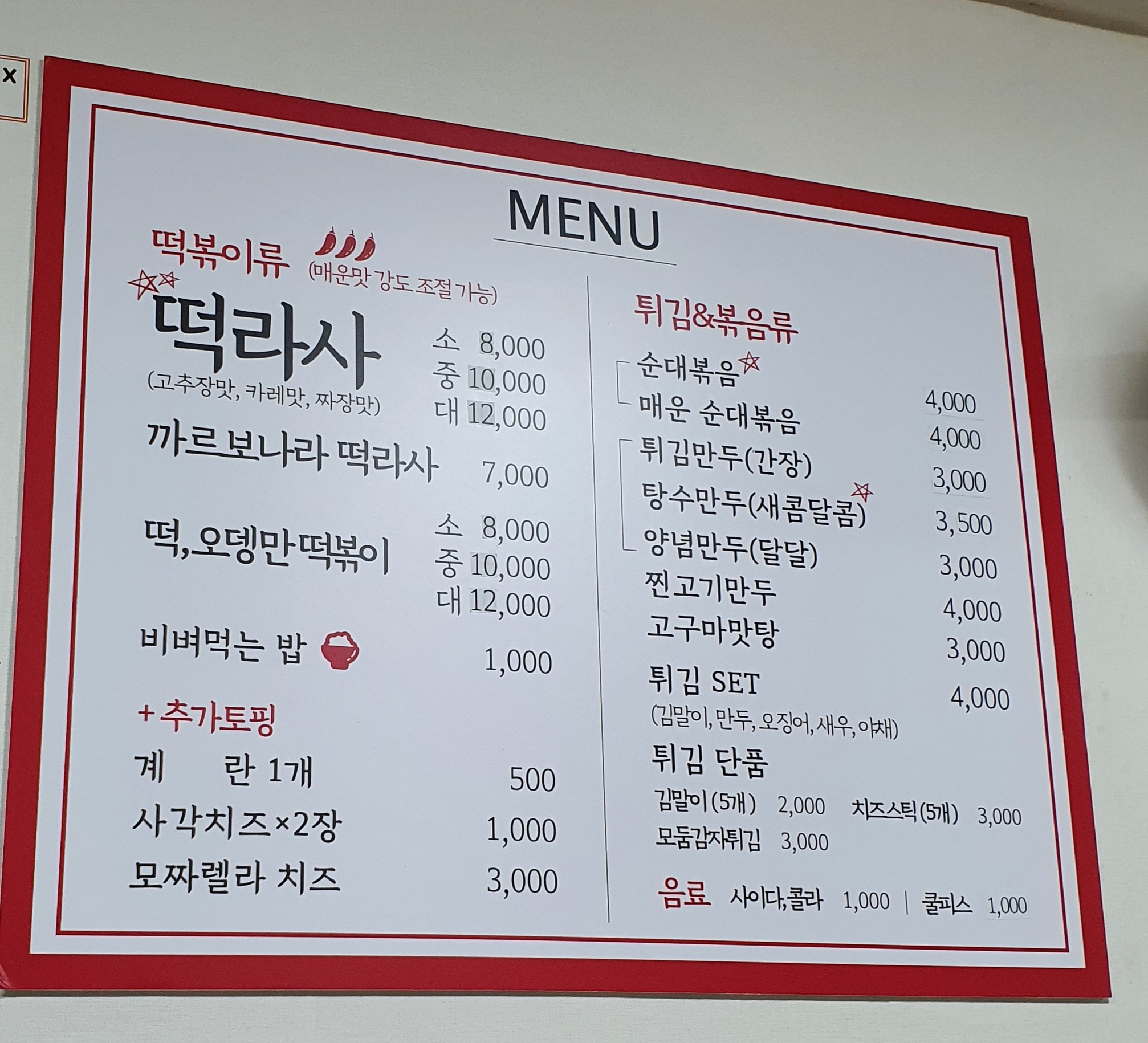간판이 빨간게 아주 떡볶이를 잘 할것 같은 느낌이 온다.