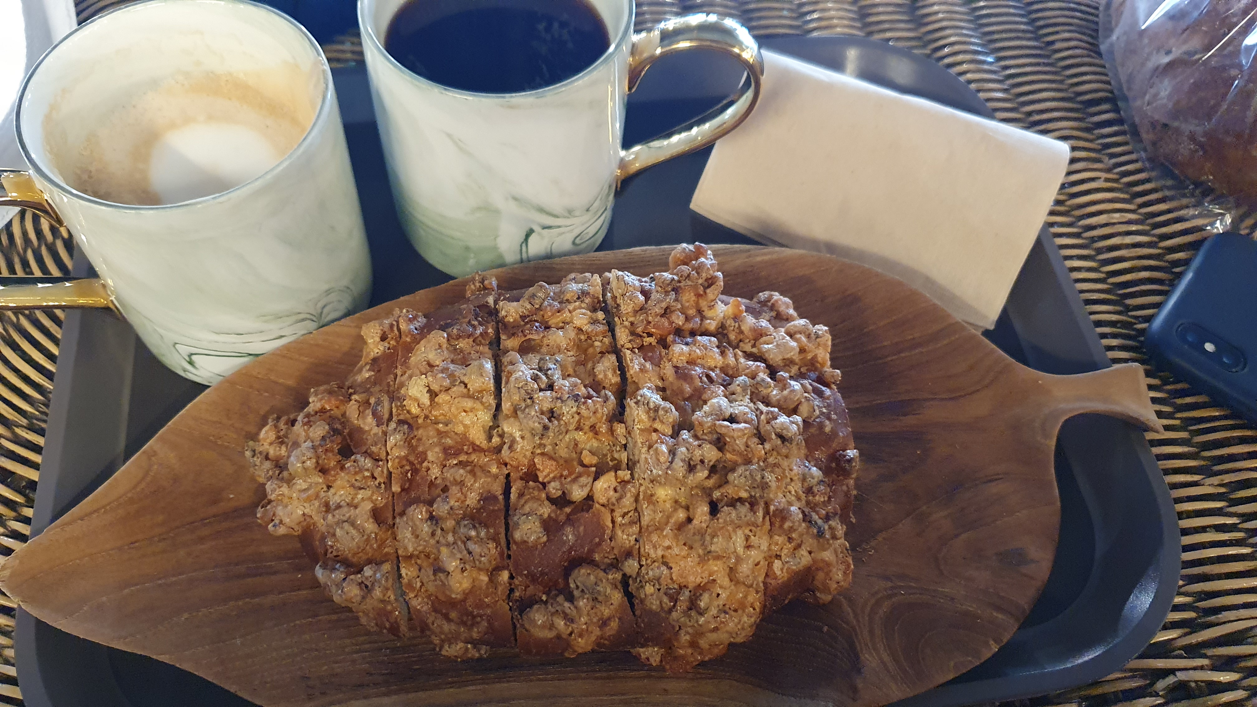 매장에서 먹는 빵으로는 겉면에 호두가 가득 묻어있는 크리스피한 빵이었고,