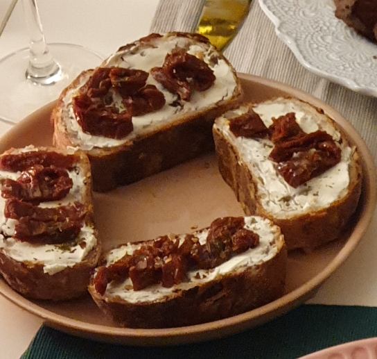 그리고 다른 빵은 집에서 크림치즈를 발라 선드라이 토마토를 얹어서 먹었는데