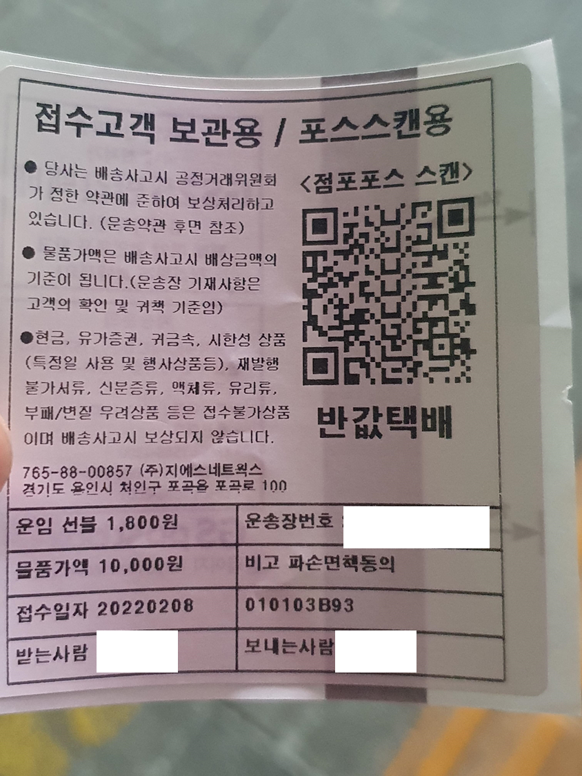 기계를 통해 무게를 재고 접수를 완료하면 위에서 접수증이 출력되는데, 고객 보관용은 따로 보관하시고 운송장은 박스에 붙이시면 됩니다.
