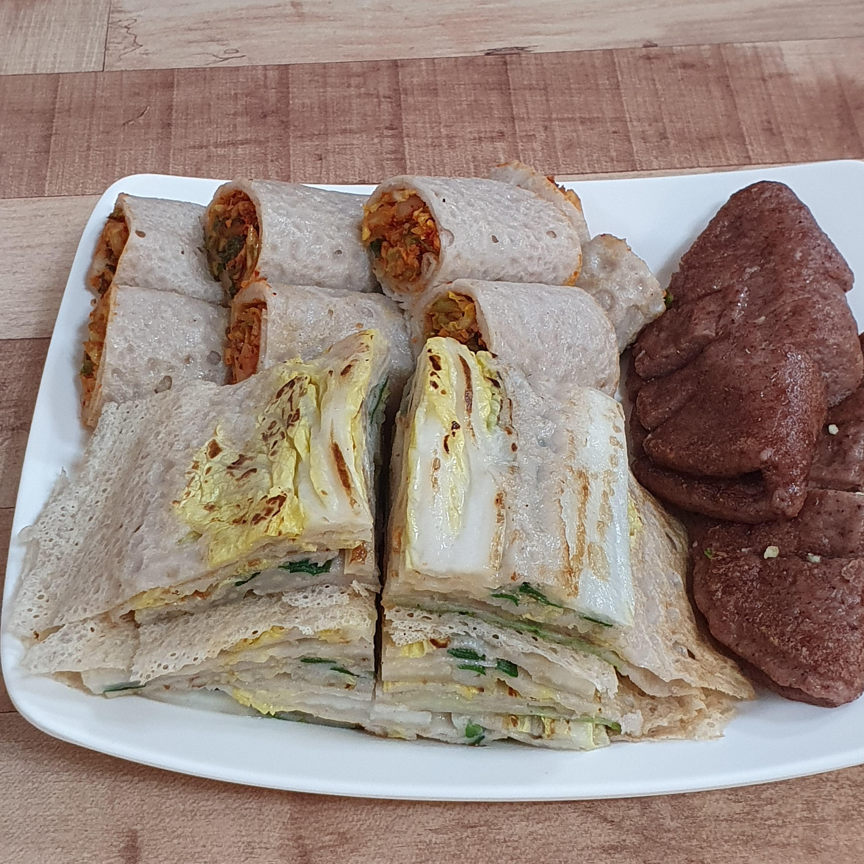 그리고 통메밀 전병의 경우 일반적으로 밖에서 먹는 전병과는 조금 차이가 있었어요