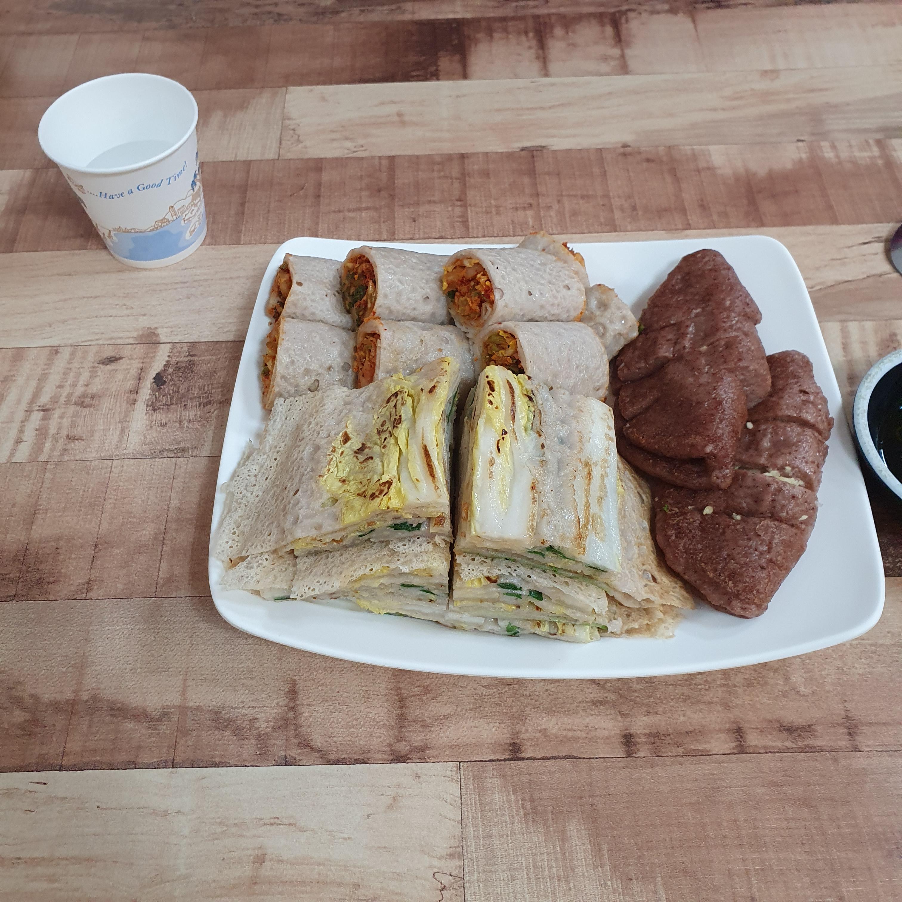 평소에 먹는 전병은 좀 바삭하게 익힌 전병인데, 이 전병은 부드러운 느낌이라 좀 생소했던 것 같아요.