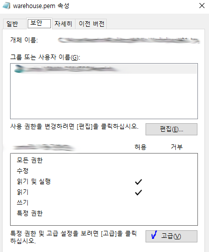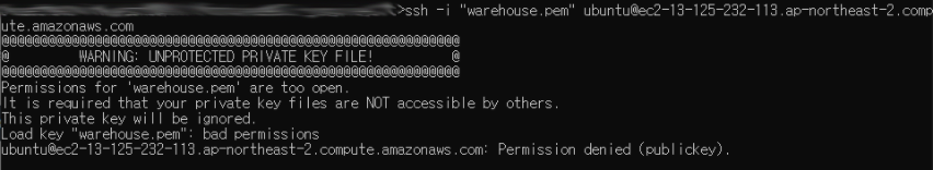 AWS에서 EC2 를 생성할 때 pem키를 다운로드 받게 되는데요, 개인키(private key)는 권한이 600 (rw-------) 으로 설정되어 있어야 사용이 가능합니다.