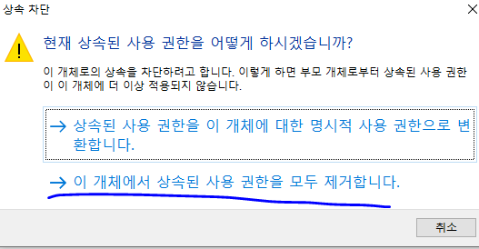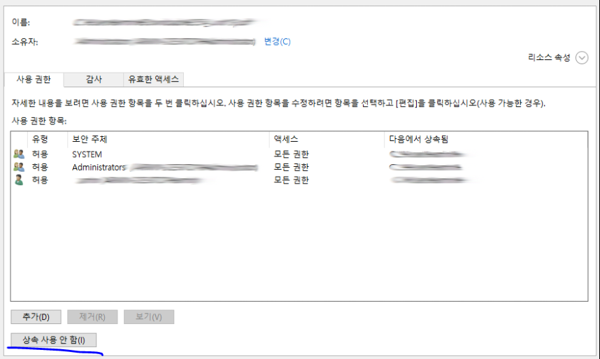 [상속 사용 안함] 을 눌러줍니다.