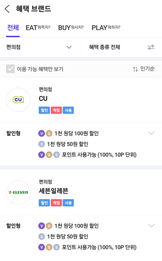 할인되는 편의점 및 유의사항