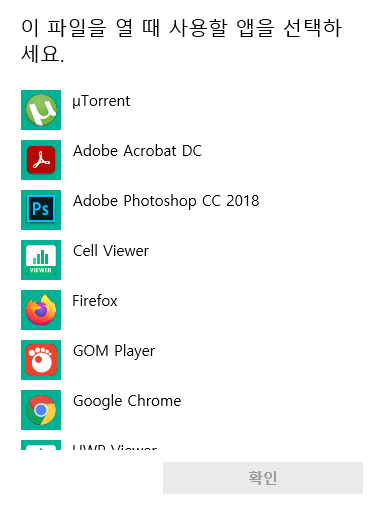 여기서 사용할 앱으로 메모장을 선택 후 확인버튼을 눌러줍니다.