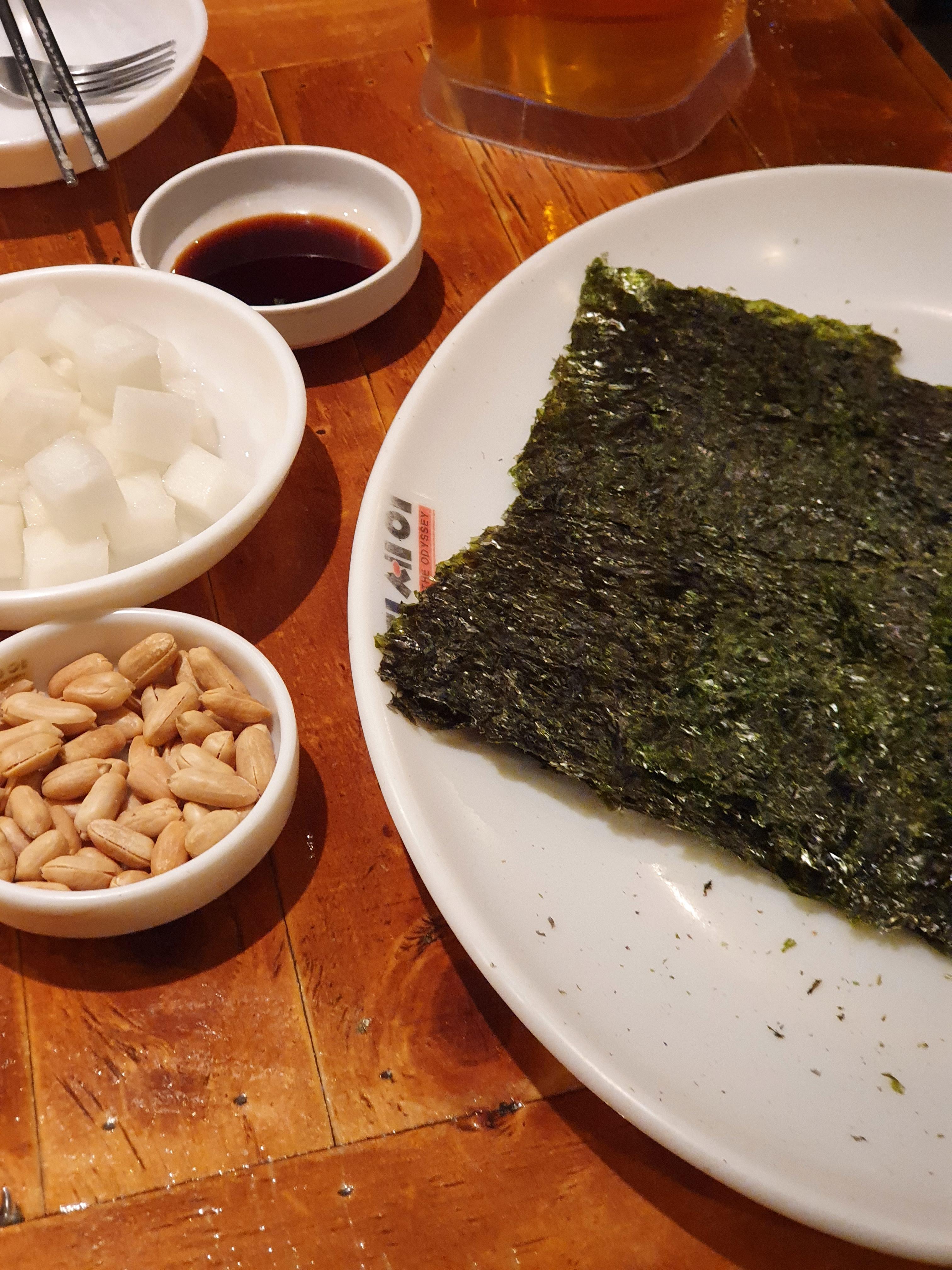 기본 안주로 구운김이 나오는데 간장에 찍어먹으면 진짜 존맛탱이다.