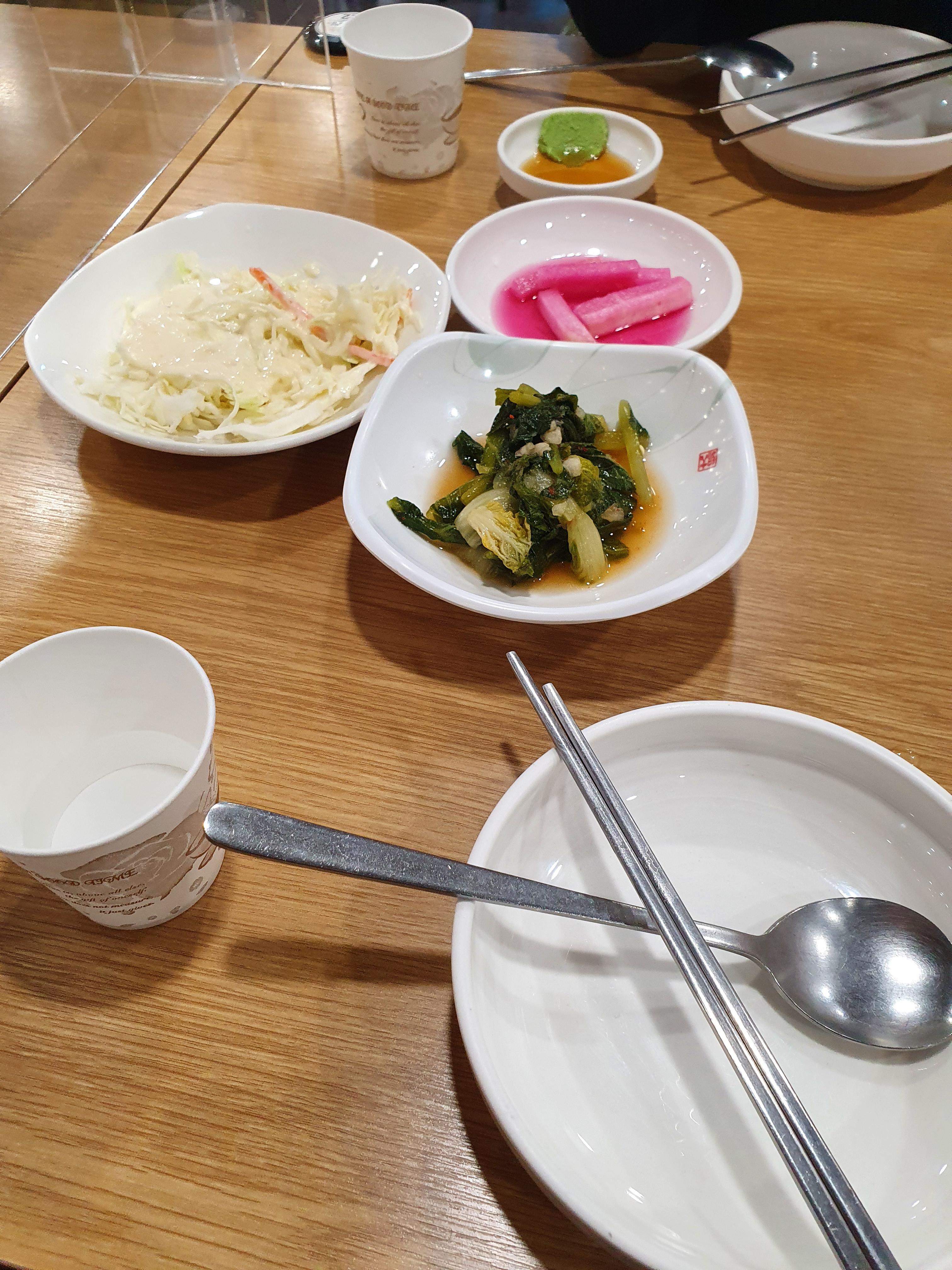 양배추 샐러드에 열무김치 정도로 나옵니다.