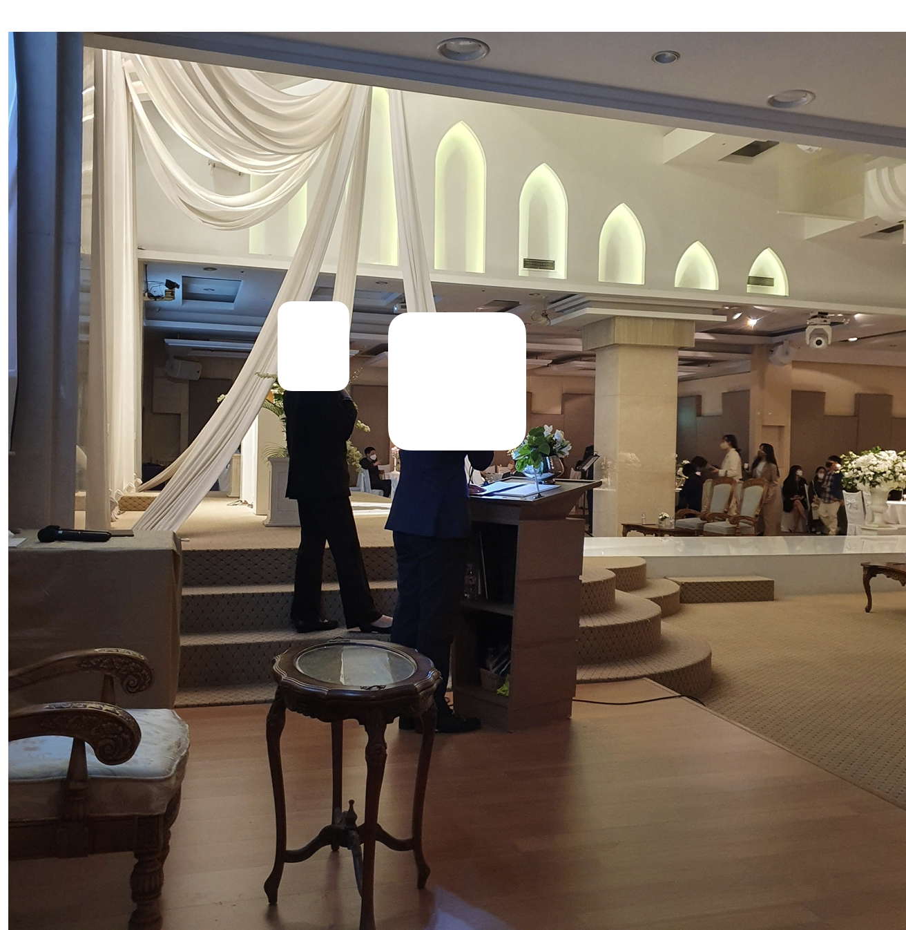 사회자 뒤에서 결혼식을 보게 되었다..
