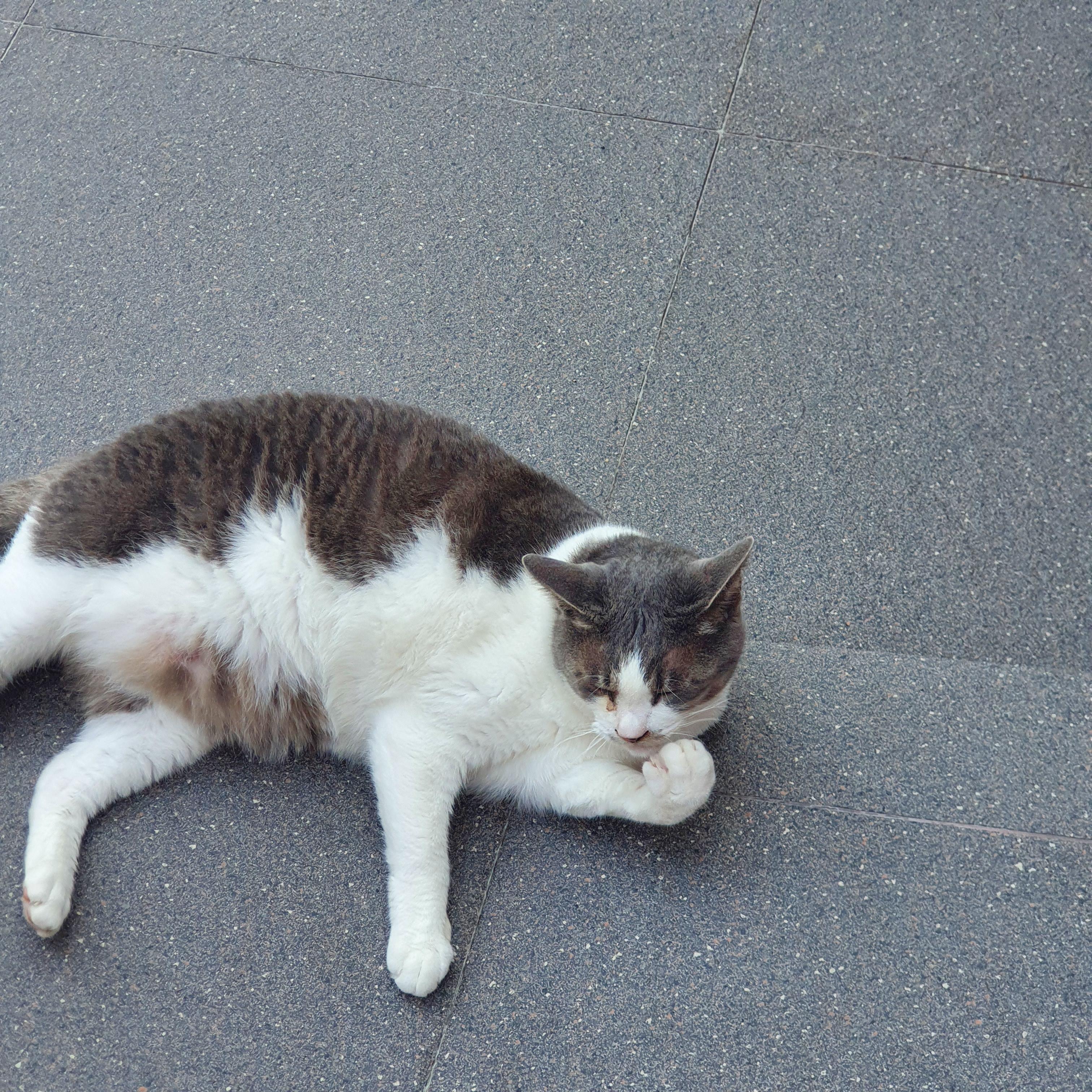 더워서 그런가 돌바닥에 부비적 부비적 아주 신이났다.