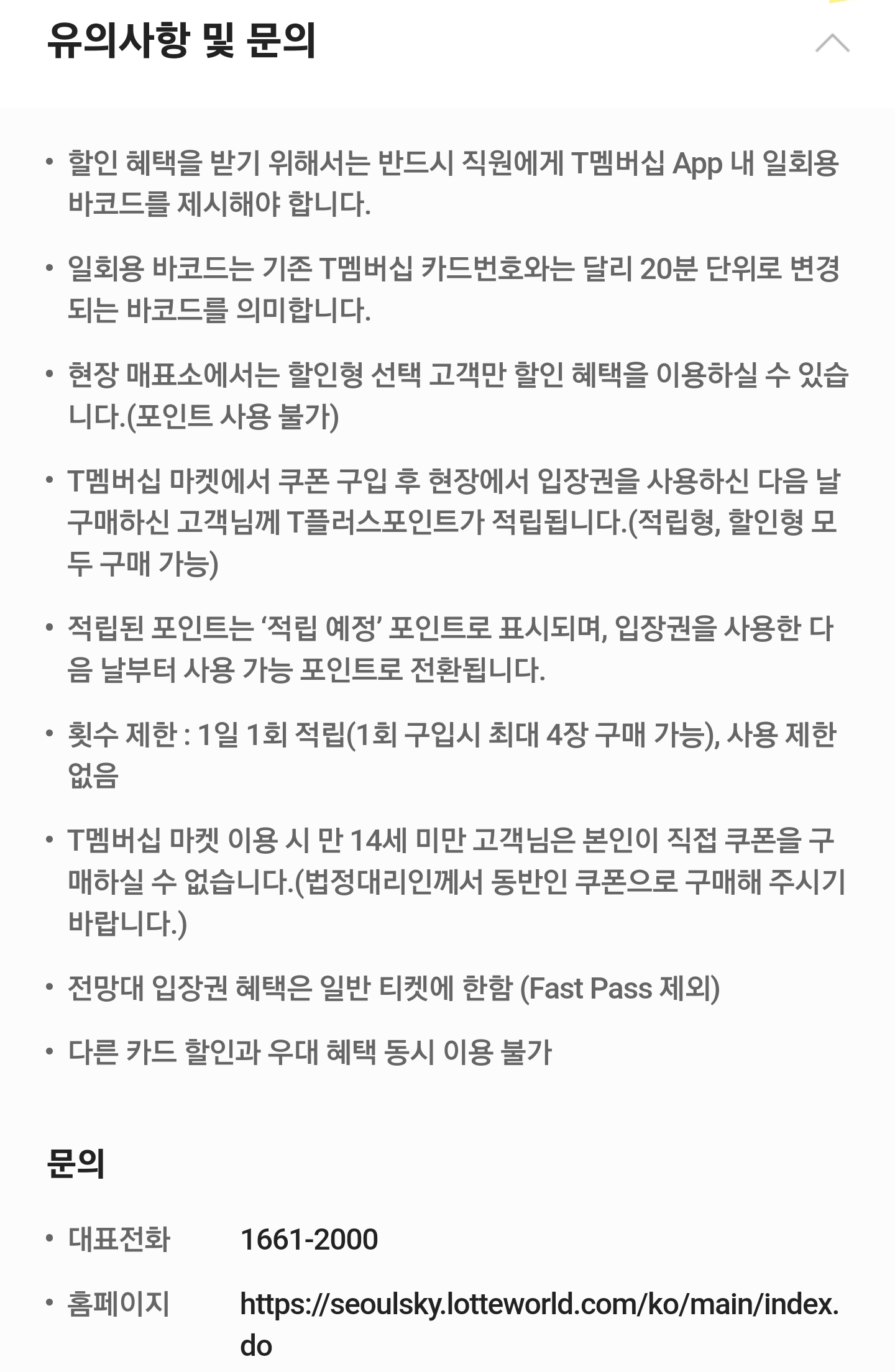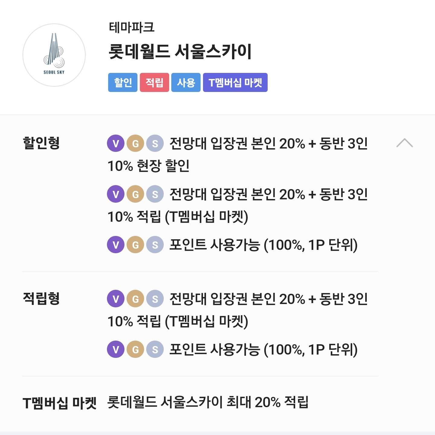 T 멤버십 롯데타워 서울스카이 할인정보 참고하시고