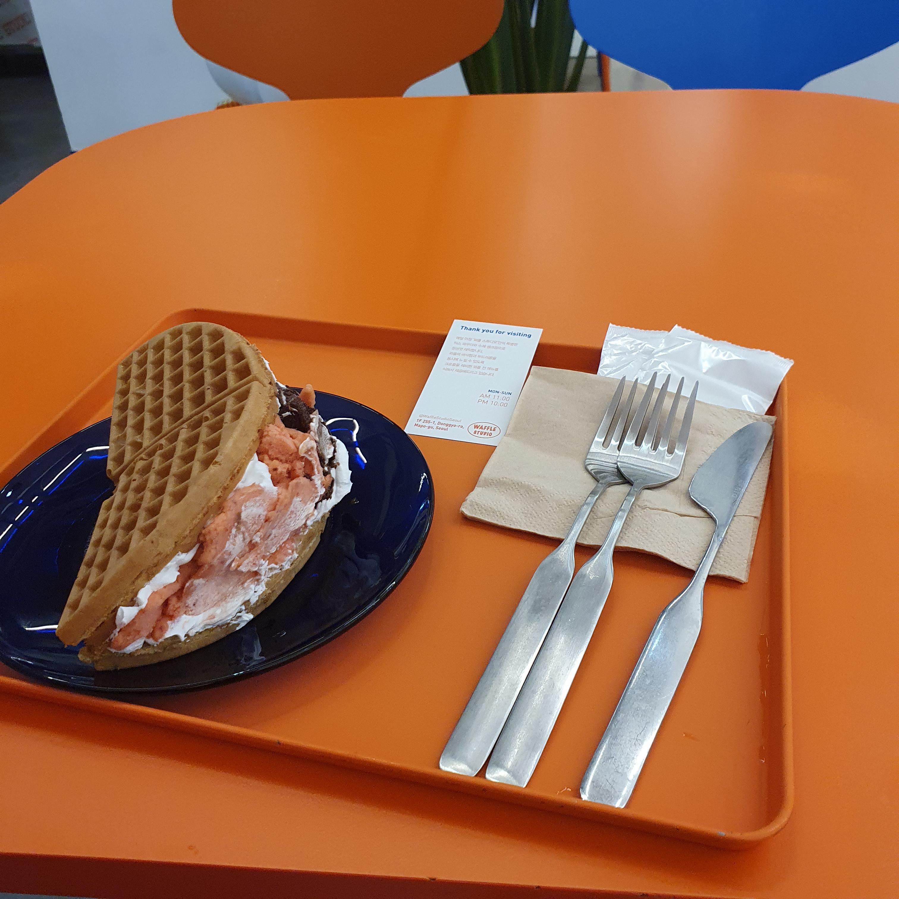 와플이 과자같은 와플이라 잘 안잘렸어요. 부셔져 버려서 생각처럼 깔끔하게 먹기는 어려웠습니다!