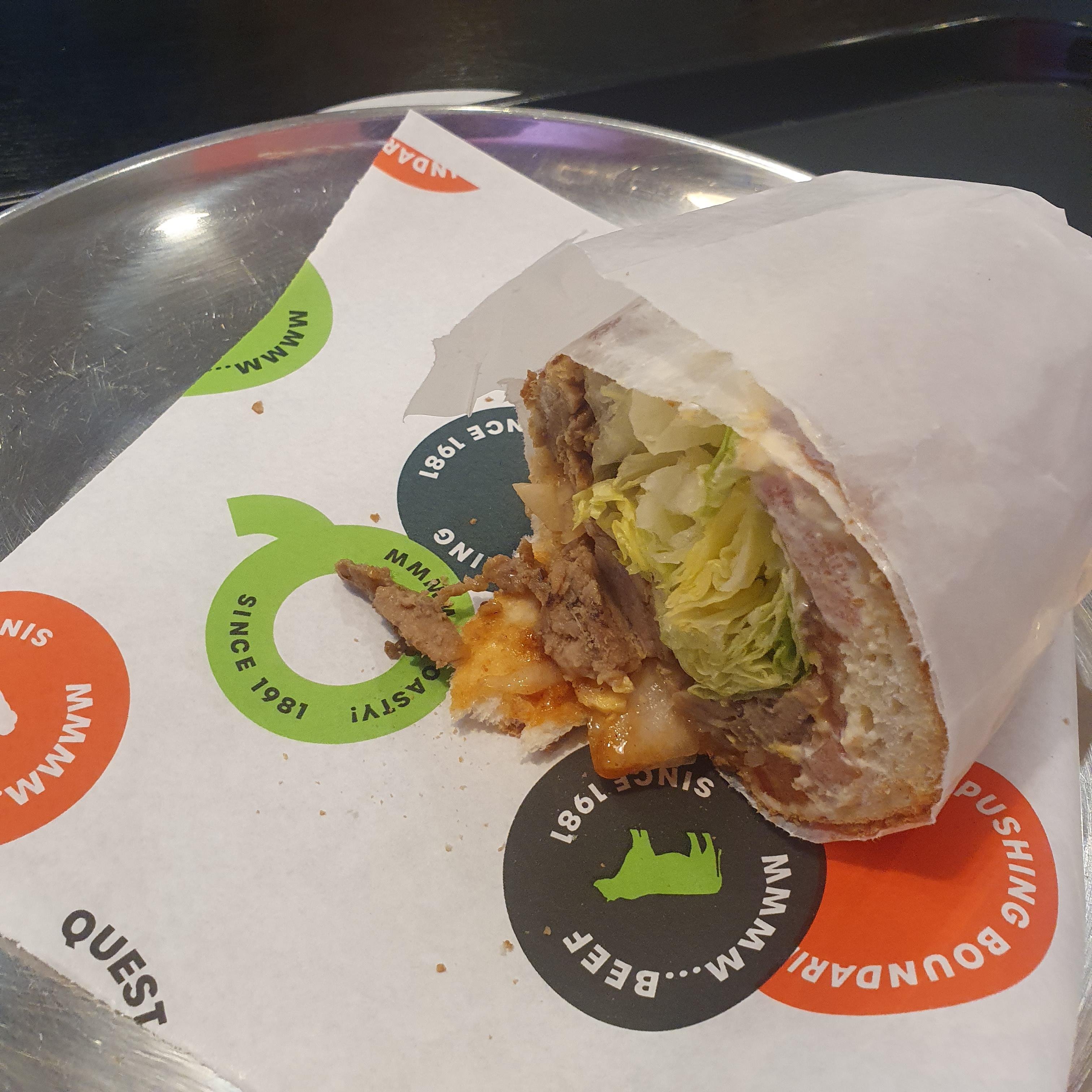 받고나니 불고기와 야채 그리고 정체모를 소스가 들어있습니다.