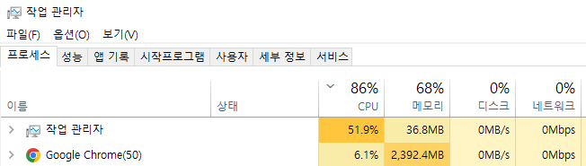 저는 크롬을 통해서 이 글을 작성하고 있고, 윈도우라는 운영체제는 "Google Chrome" 이라는 프로세스가 수행 중이라는 것을 작업관리자 프로세스를 통해 보여주고 있습니다.