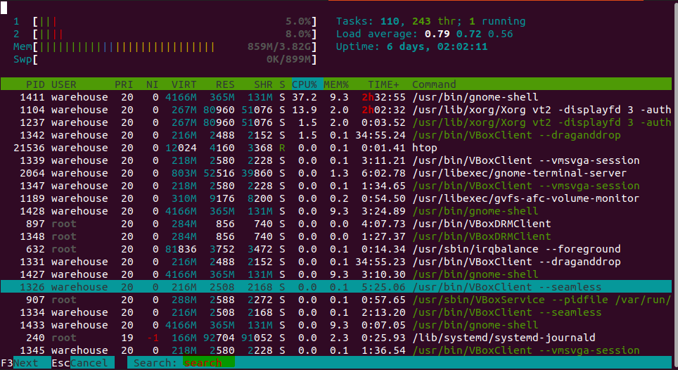최근 운영 중인 서비스가 프로세스를 많이 사용하게 되면서, ps 나 top 보다 조금 더 나은 도구가 필요하다는 생각이 들었습니다. 그래서 찾아보니 htop 이라는 툴이 있어서 일단 VM에서 어느정도