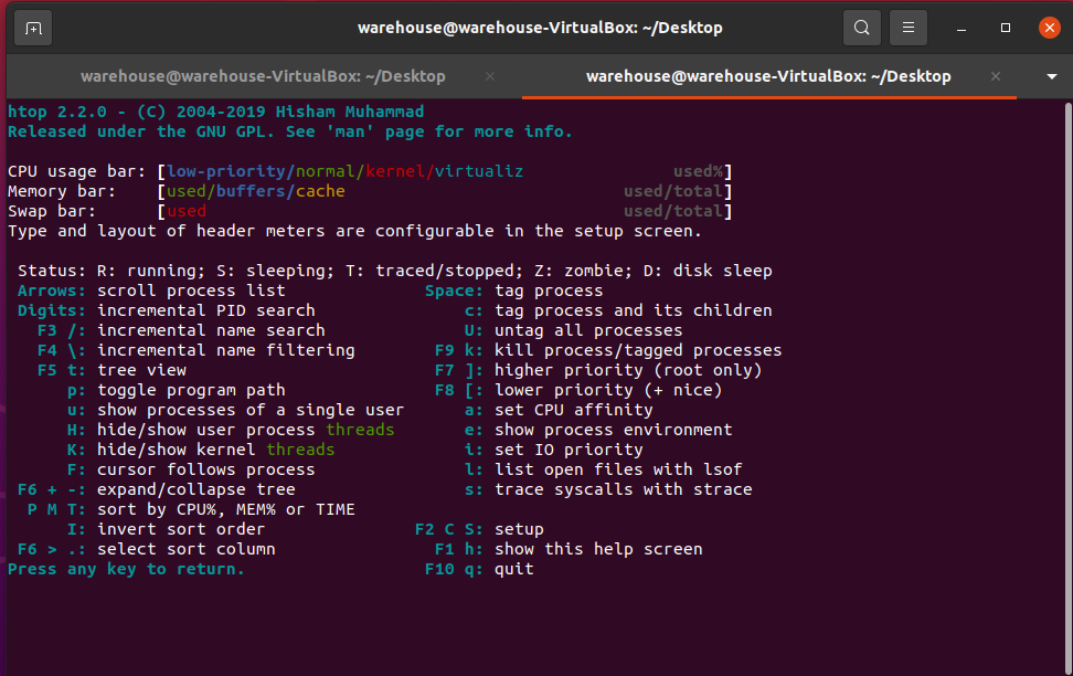 - F10: htop을 종료합니다.