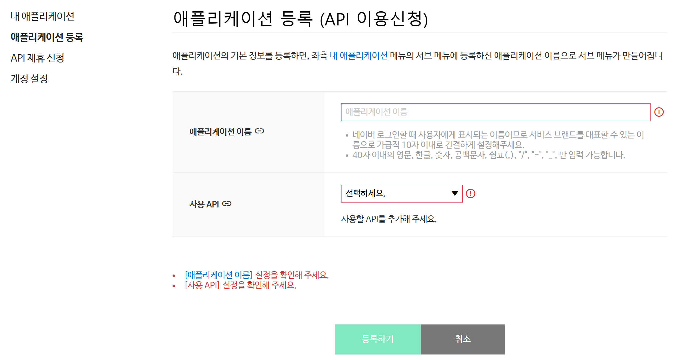 2. 애플리케이션 등록 (API 이용 신청)