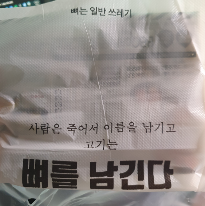 비닐을 뜯고나서 조금 놀란 부분이 하나 있다면.. 뼈를 일반쓰레기에 버리는 봉투를 따로 준다는 것입니다.